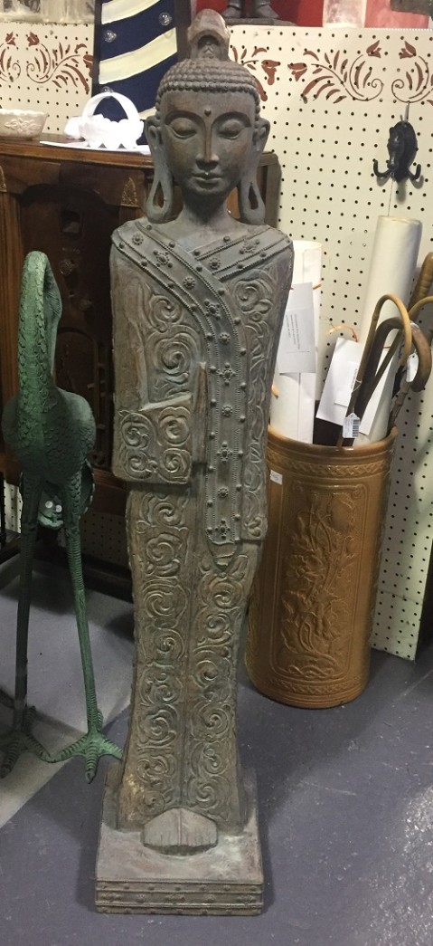 48" Tall Regal Buddha Statue Made of Polystone with the Look of a Carving Made of Sandalwood